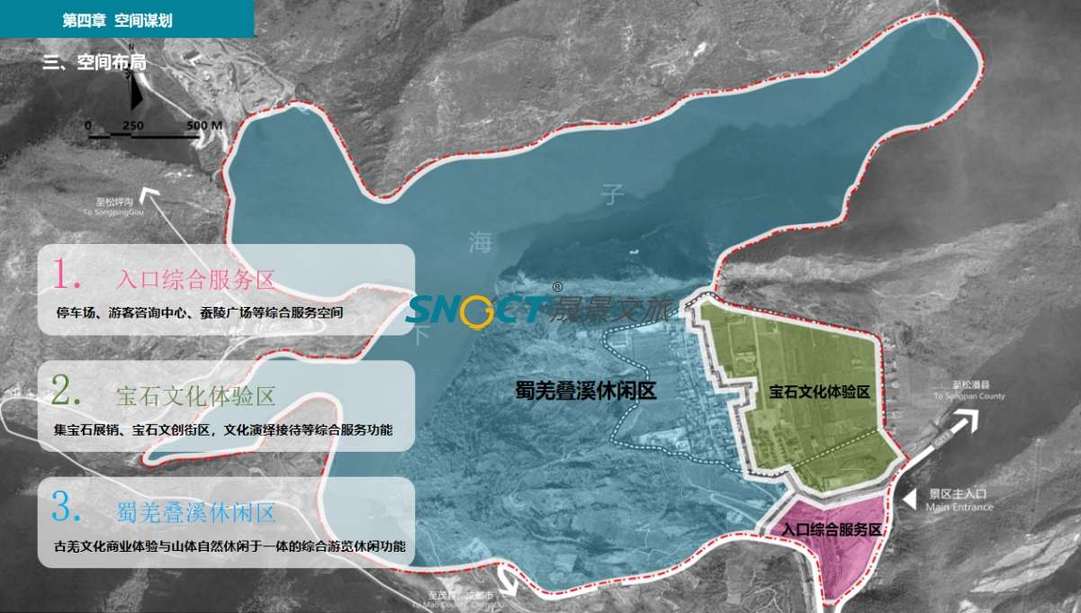 疊溪鎮(zhèn)位于阿壩藏族羌族自治州茂縣西北部,岷江上游,緊鄰國道213,毗鄰松坪溝景區(qū),距離茂縣縣城56公里。鎮(zhèn)政府駐地較場村,平均海拔2325米。疊溪鎮(zhèn)有地震遺跡、地質(zhì)奇特景觀、疊溪海子等自然景觀,悠久深厚的古蜀蠶叢文化、原始古樸的羌民族風(fēng)情等。該項(xiàng)目策劃范圍涵蓋疊溪古鎮(zhèn)片區(qū)及疊溪下海子,總策劃面積2.12平方公里,約3180畝,其中陸地面積1.1平方公里,水域面積1.01平方公里。